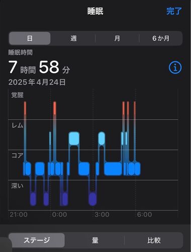 後7分足りませんでした。 8時間なかなか難しい😓 最近すこぶる調子がいいです。 自分でもビックリするぐらいです。 今までずっと寝不足だったのかな?と思います。 6時間で十分だろ!って勝手に思ってました。 睡眠は本当に大事だな😱